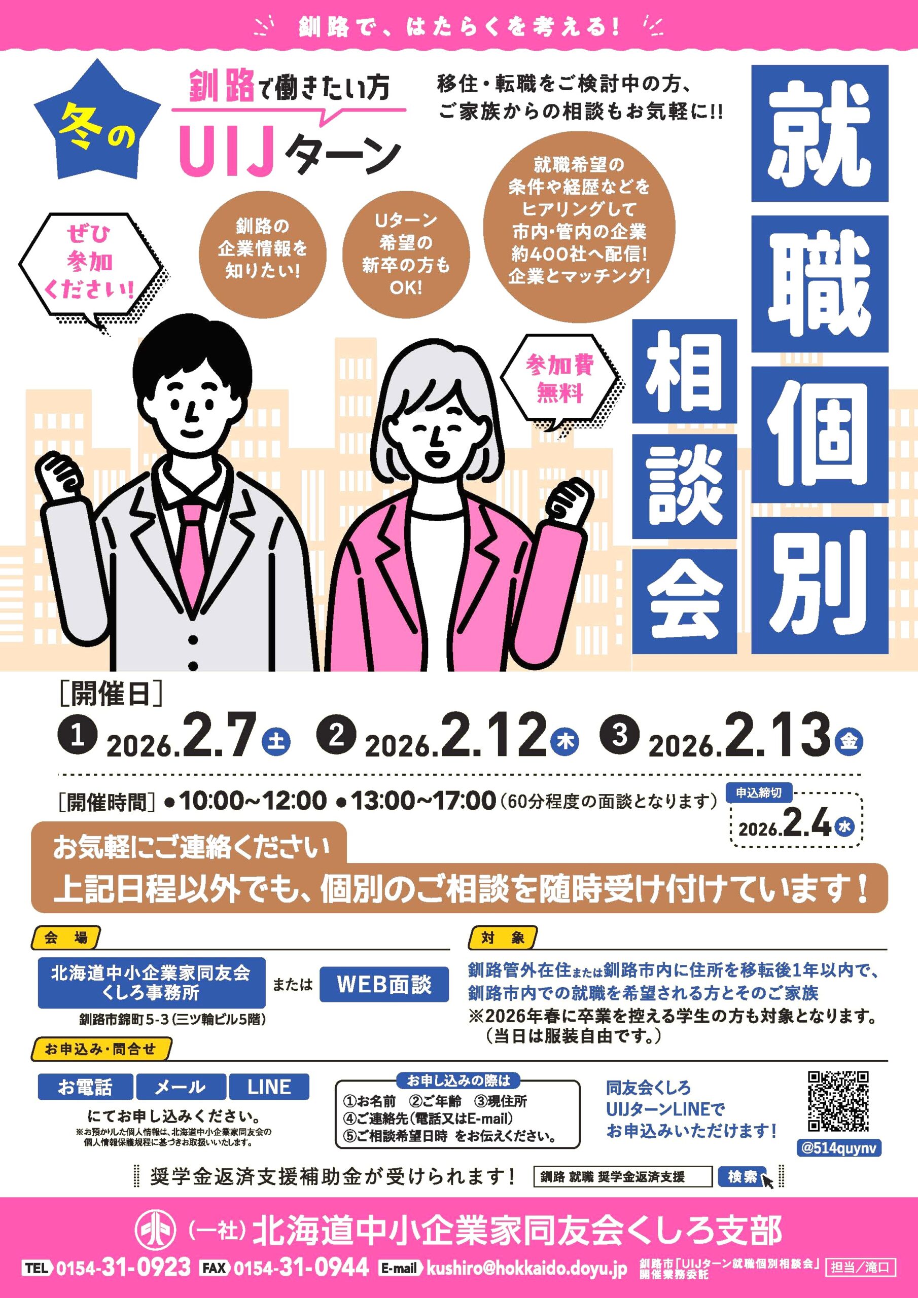 釧路市内での就職を希望される方とそのご家族(2026年春卒業の新卒の方も対象となります)