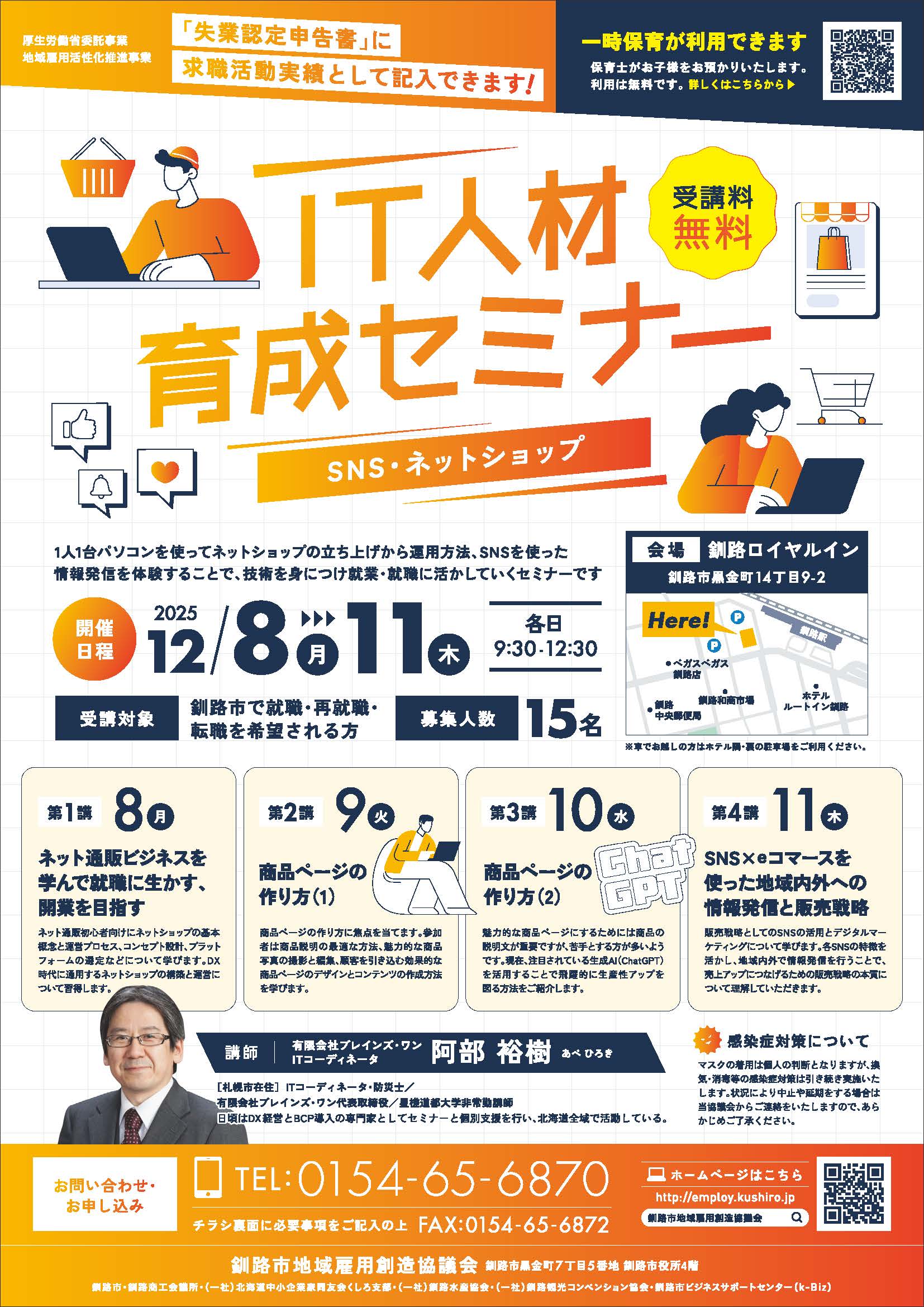 • IT人材育成セミナー(SNS・ネットショップ)(一時保育(無料)が利用できます)